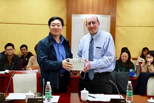 最后,Michael副主任和殷瑛老师给创新班学员赠送了从马里兰大学带来的礼物,并对大家表示祝福。赵龙跃教授代表国际治理创新研究院向其回赠了中国的小礼品,纪念这段宝贵的友谊。见面会结束后,Michael副主任与国际治理创新研究院全体成员合影留念,见面会在热烈的掌声中圆满结束。