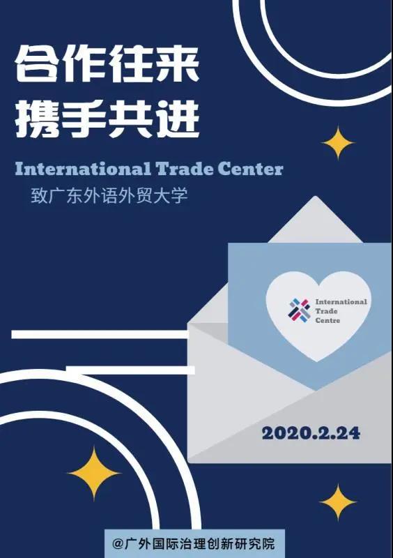 经过艰苦努力,中国疫情防控形势积极向好的态势发展。中国抗疫努力得到了包括联合国和世界卫生组织官员在内的国际社会的普遍肯定。在特殊时期,伟德国际betvlctor1946所收到来自ITC的慰问信以及ITC积极推动与国际治理创新研究院合作开展“联合国国际贸易中心月”系列讲座的举动,无不体现了广外与国际组织在关键时刻相互支持、守望相助的友谊精神。我们也相信,经历过风雨和患难,友谊之花会开得更艳!