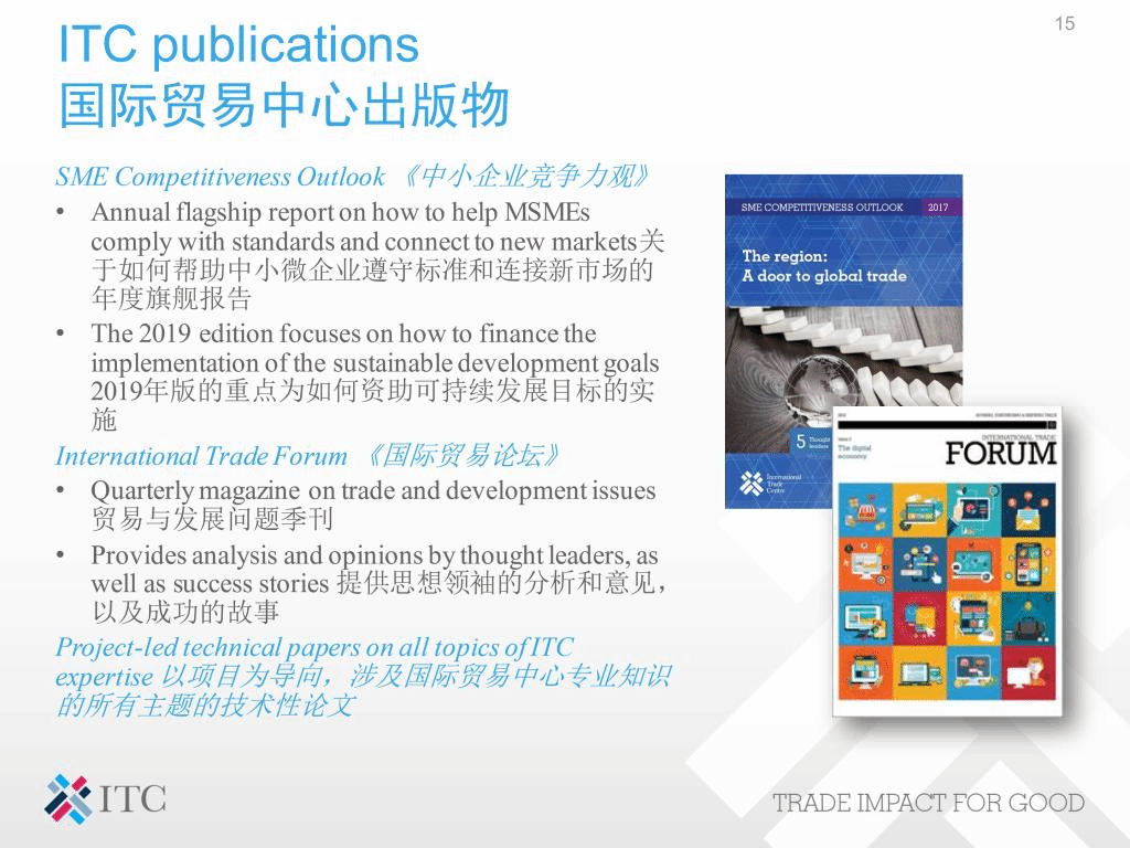 此外,ITC每年都出版公开刊物,如《中小企业竞争力前景