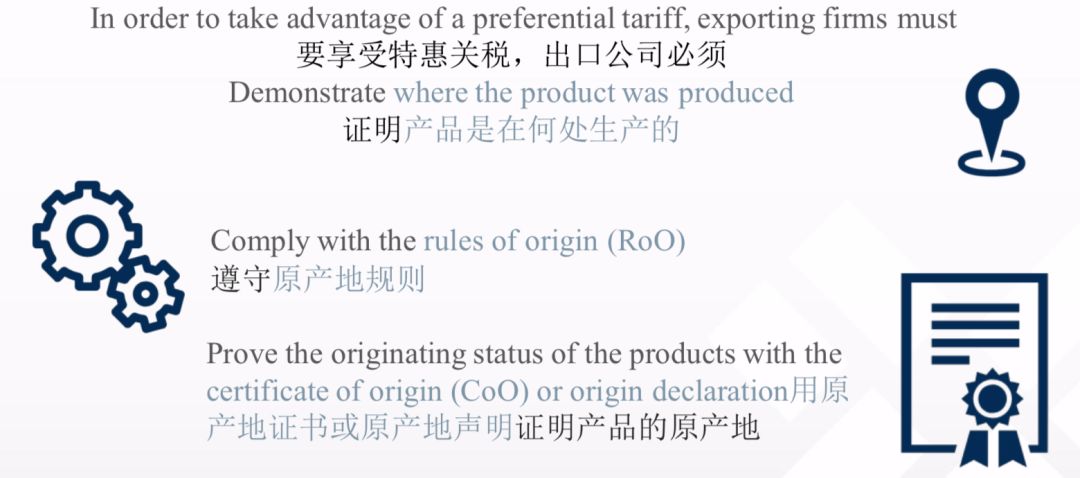 安东妮亚·纳伏扎菲:我先从后面这个问题“在适用这些严格规定的过程中是否会产生(贸易)限制作用?”开始回答。对的,原产地规则确实有很强的限制性。因此,很多国家不会使用特惠关税,因为遵守原产地规则耗资较大,而且行政程序负担很重。此外,原产地规则还有附加条款,例如,我们说的保留期,您要保留所有文件至少三年,为了满足原产地规则,您需要保留所有单据、文件,无论大小。