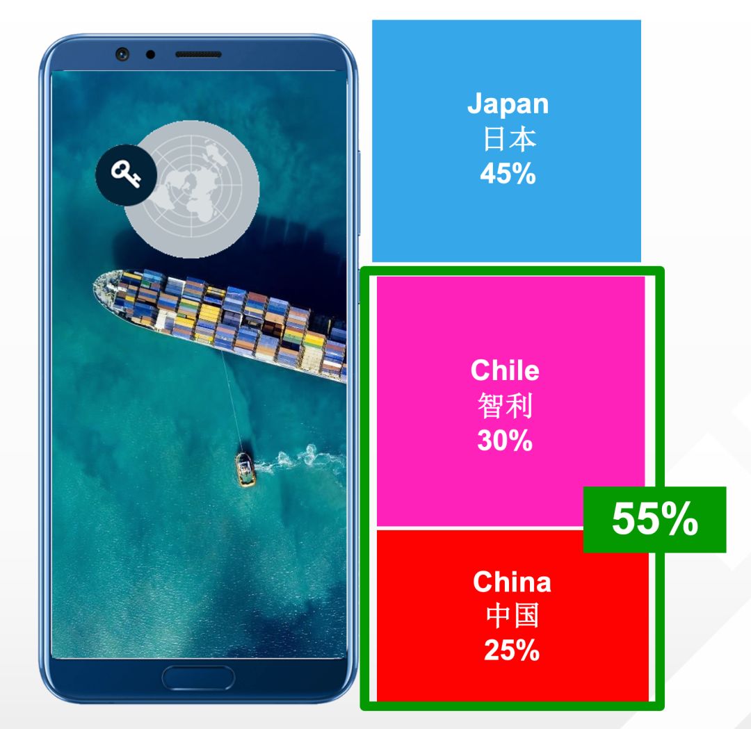 用户可在市场准入地图中找到原产地规则具体条款,其中一项重要条款是累积规则,中国与智利签订的贸易协定允许双边累积,即智利和中国视为一个整体。在这种情况下,中国和智利这个整体在生产手机所贡献的产品价值占比为55%,满足原产地规则中的区域价值成分不低于40%的标准。