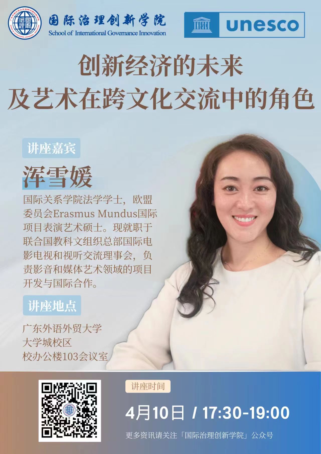讲座预告 | 浑雪媛女士:创新经济的未来及艺术在跨文化交流中的角色