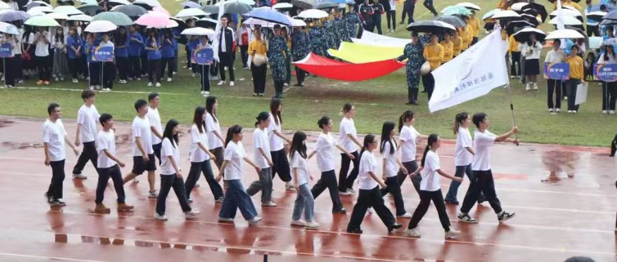校运会的序幕在雄壮的国歌声中缓缓拉开,仪仗队、各学院代表队方阵表演依次入场,步履轻快,口号嘹亮。风雨初霁,热情不歇!国创院的同学们以整齐划一的动作、高昂的士气向主席台进发,身着印有国创院logo的白色T恤,高声呐喊着专属于国创院的口号:青春如火,超越自我,国创学子,奋勇拼搏!方阵中的每个成员都全情投入,在昂首阔步间诠释同学们的青春热忱,不仅展示了国创院学子的青春活力,更体现了他们对学院的深厚情感与对未来的无限期待。