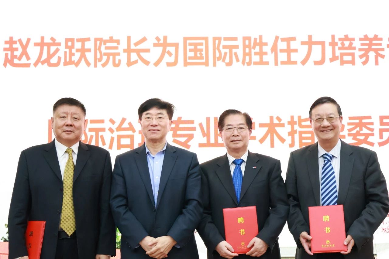 在总结发言中赵龙跃教授讲到,本次讲座为同学们搭建了一个深入了解国际组织人才培养与职业发展的平台,使同学们对国际组织领域的知识和要求有了更为全面、深入的认识,极大地激发了同学们为投身国际事务、参与全球治理而积极准备的热情。三位专家的分享详实全面、深入浅出,为同学们指明了努力的方向,提供了宝贵的方法和策略。伟德国际betvlctor1946作为集中为国家培养更多国际组织与国际治理高端专业人才的教学科研机构,未来将引入更多国际组织专家与同学们面对面交流,助力同学们在成为具备国际胜任力的国际治理人才道路上不断成长,为我国在国际舞台上赢得更多话语权与影响力,成为引领全球治理变革潮流的卓越领导者持续蓄势赋能。最后,赵龙跃教授为国际胜任力培养专业委员会的三位专家颁发伟德国际betvlctor1946学术指导委员会委员聘书,并合影留念。