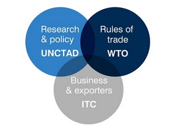 联合国国际贸易中心(International Trade Center, ITC)是联合国贸易发展会议组织和世界贸易组织共同管辖的机构,成立于1964年。ITC的宗旨是协助发展中国家政府和企业理解世界贸易组织规则、开发国际贸易促进战略、增强企业的国际竞争力。主要职能包括制定贸易推广计划、设立促进贸易服务处、发布出口市场信息报告、提供市场开拓技术咨询和培训经贸投资人才等。