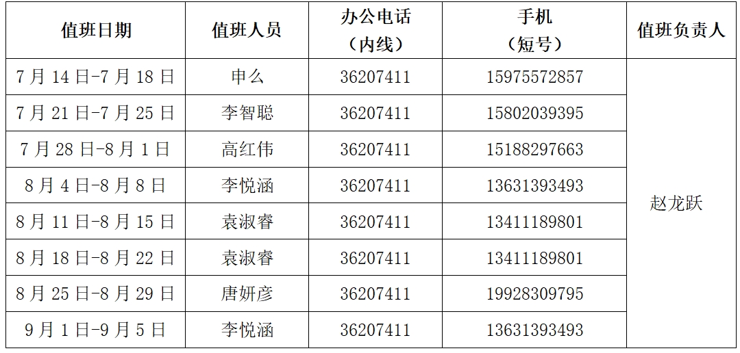 2、值班人员在用印时间到办公室值班,接听电话、收发报刊信件,重大事情须请示学院主管领导。其余时间为电话值班,保持手机畅通。
