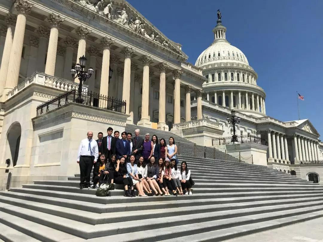 了解清楚政治体制是做好政策学习研究的一个重要前提,为此学院组织大家参观了美国权力中心——国会大厦,以加深同学们对美国政治体制的了解。国会大厦是美国民主政治的象征,1800年以来一直是国会各类会议的召开场所,国会议员聚集在此制定法律,各任美国总统亦在此宣誓就职并且宣读历年的国情咨文,其古典与当代共融的建筑风格,也抽离了时光的晕染,表达着不断“生长”的美国。