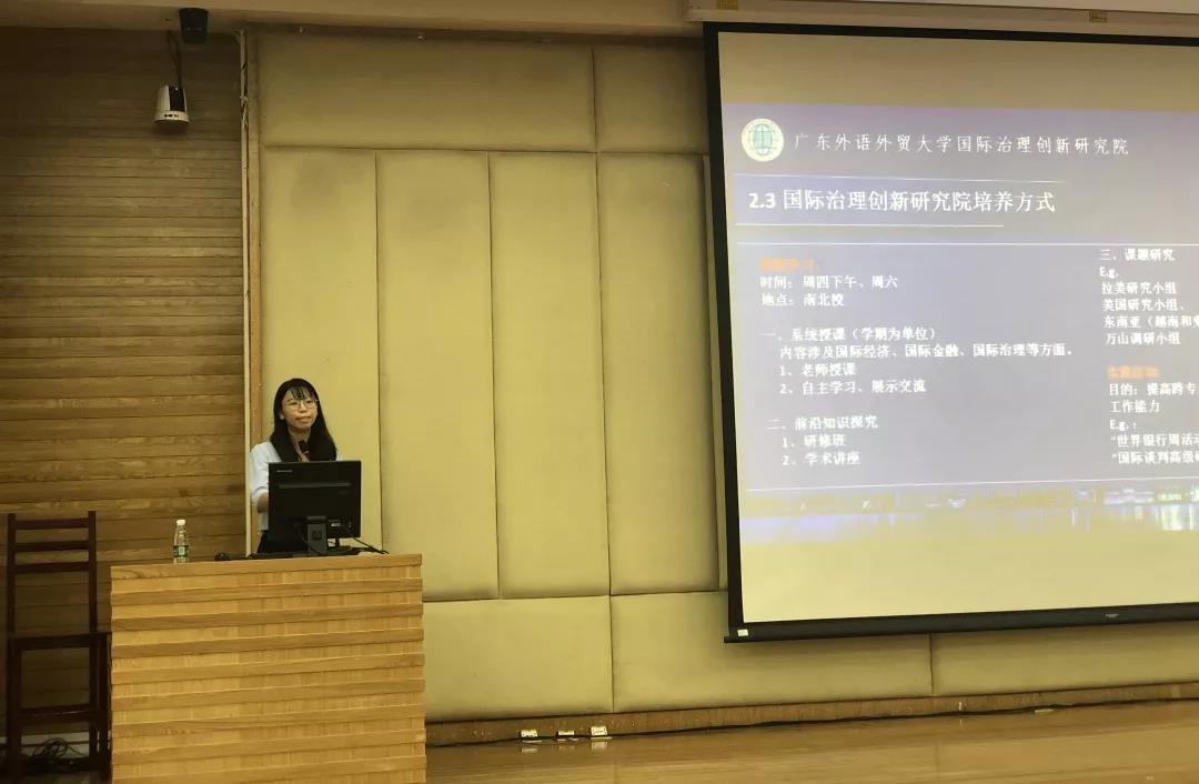 宣讲会主要介绍四项内容:国际治理创新研究院概况、国际治理创新硕士研究生项目的总体情况、研究院培养方案和实施情况、19级硕士研究生的报名与选拔方式。