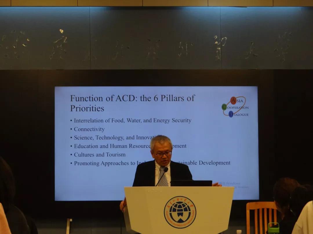 在亚洲合作对话的职能方面,帕钗先生介绍了六大职能,分别是:食品、水和能源安全相互关系;相互连通;科技与创新;教育和人力资源发展;文化与旅游;促进包容性和可持续发展。其中,帕钗先生对人力资源发展、文化与旅游以及可持续发展展开了详细的论述。