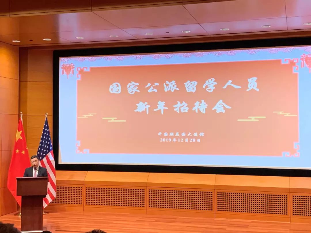 2019年12月28日,国际治理创新研究院2017级研究生受邀参加了中国驻美国大使馆举办的“国家公派留学人员新年招待会”。学生们在异国他乡深切感受到了来自祖国的亲切关怀,一起来回顾一下新年招待会的精彩瞬间吧!