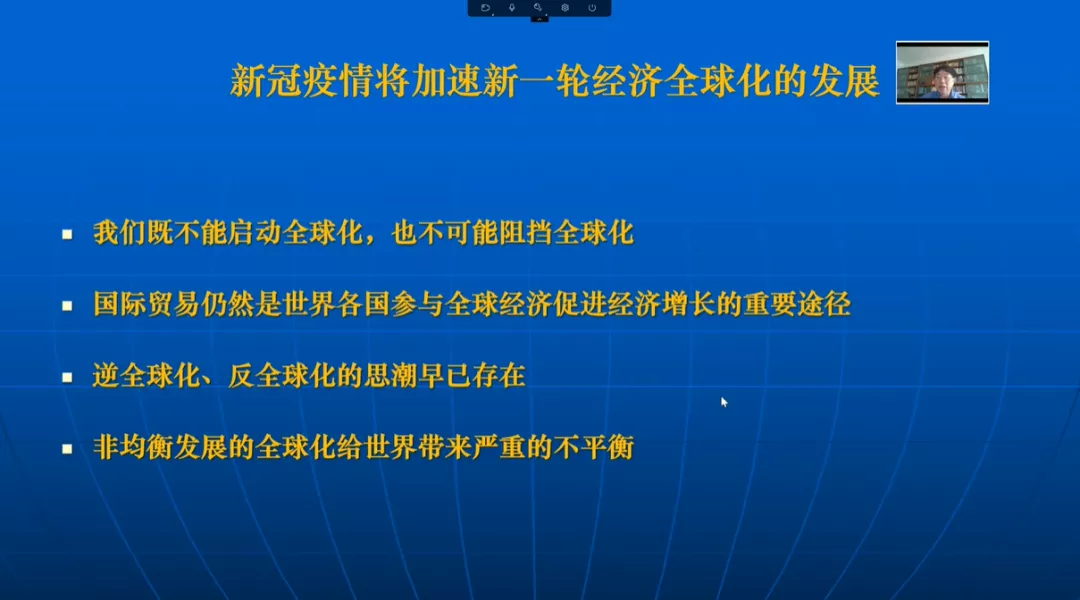 在全球范围内的疫情蔓延虽然造成了全球经济形势的下降和困难,但这只是短期的变化,并没有改变经济全球化的总体趋势。中国在疫情防控和恢复经济发展方面的突出表现,进一步提升国际地位和影响,为推进引领新一轮经济全球化和国际规则的重构和创新提供新的机遇。赵龙跃教授认为,相对于某些国家所采取的单边主义措施,中国积极改革开放、扩大市场,引领新一轮经济全球化的发展,中国将大有可为。重要的是进一步加速推动国际规则的重构与创新;坚持“一带一路”的理念和路径;加大市场开放力度,拉动世界经济增长;全面实施创新驱动发展战略,加快科技成果转化应用;创新对外投资方式,培育国际经济合作竞争新优势;重视综合型复合型国际治理人才的培养和使用等。