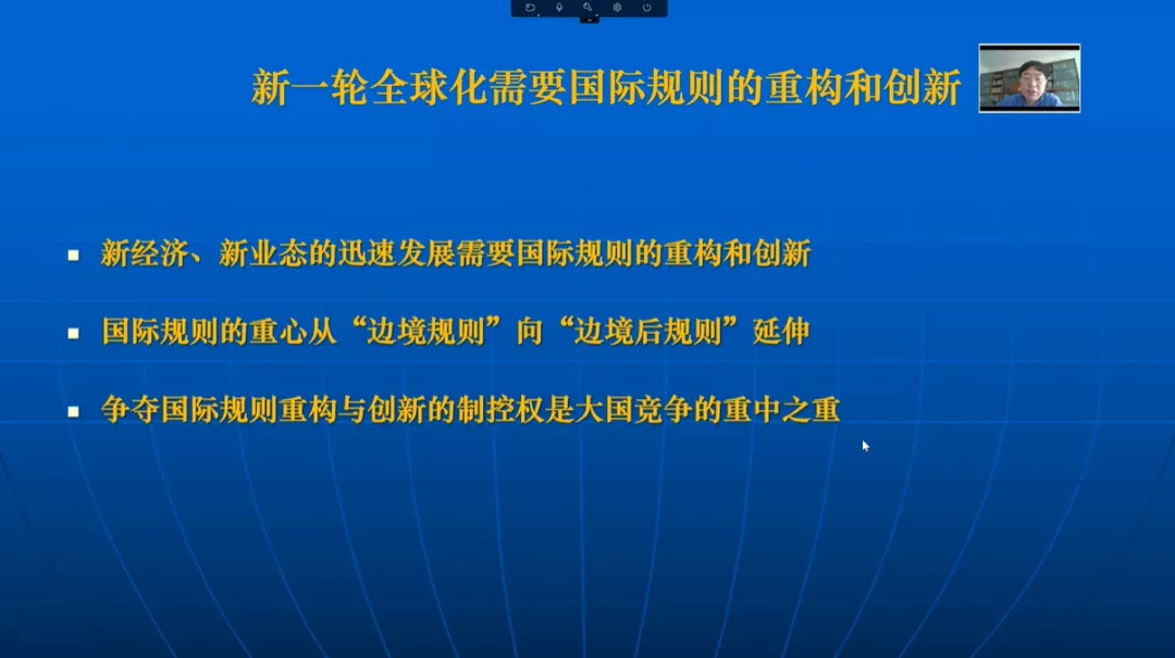 随着经济全球化的深入发展,许多新经济新业态发展迅速,现行的国际经济贸易规则已经不能满足新型经济发展的要求。例如,世界贸易组织成立于1995年,成立时的行业状况与现在大不相同,规则也需要与时俱进。国际贸易谈判的议题从传统的关税减让和优惠转向标准的提升,其重点是从“边境规则”向“边境内规则”的转变。