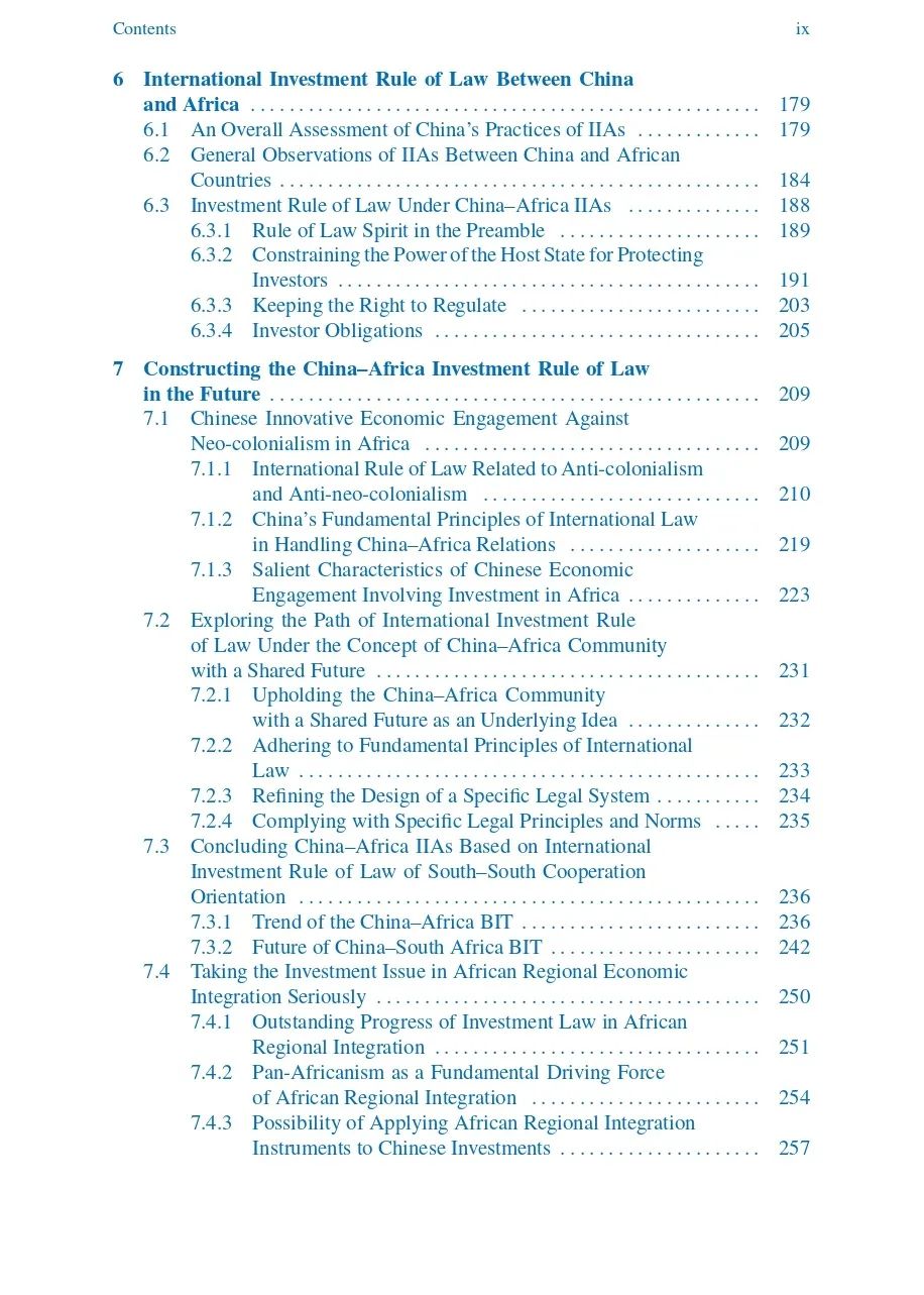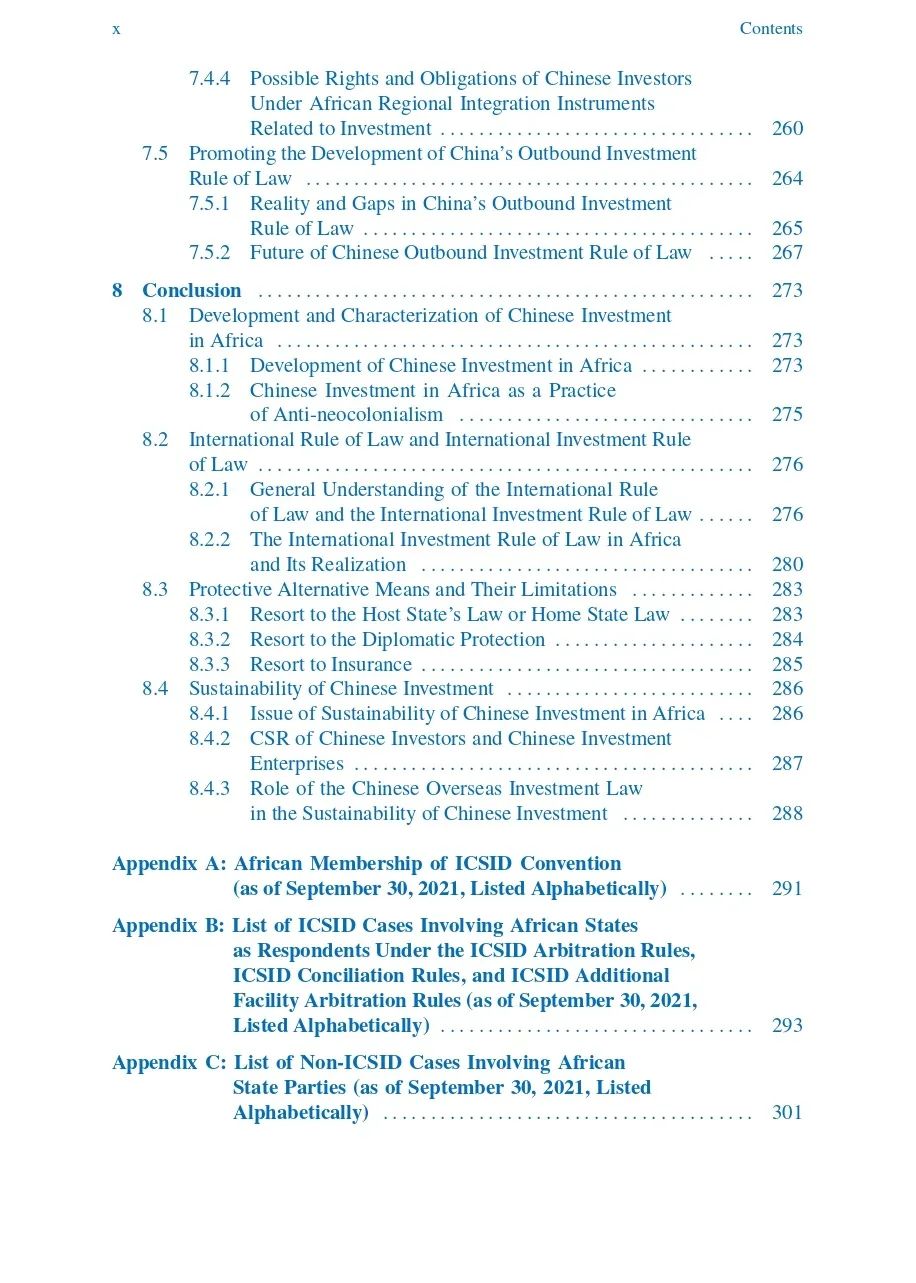 《国际投资法治理念下中国在非洲投资的法律保护与可持续性》(Legal Protection and Sustainability of Chinese Investments in Africa under the Concept of International Investment Rule of Law)专著的目的是在国际投资法治的理念和框架下探索中国在非洲投资的保护和可持续性问题,以促进中国和非洲的可持续发展。