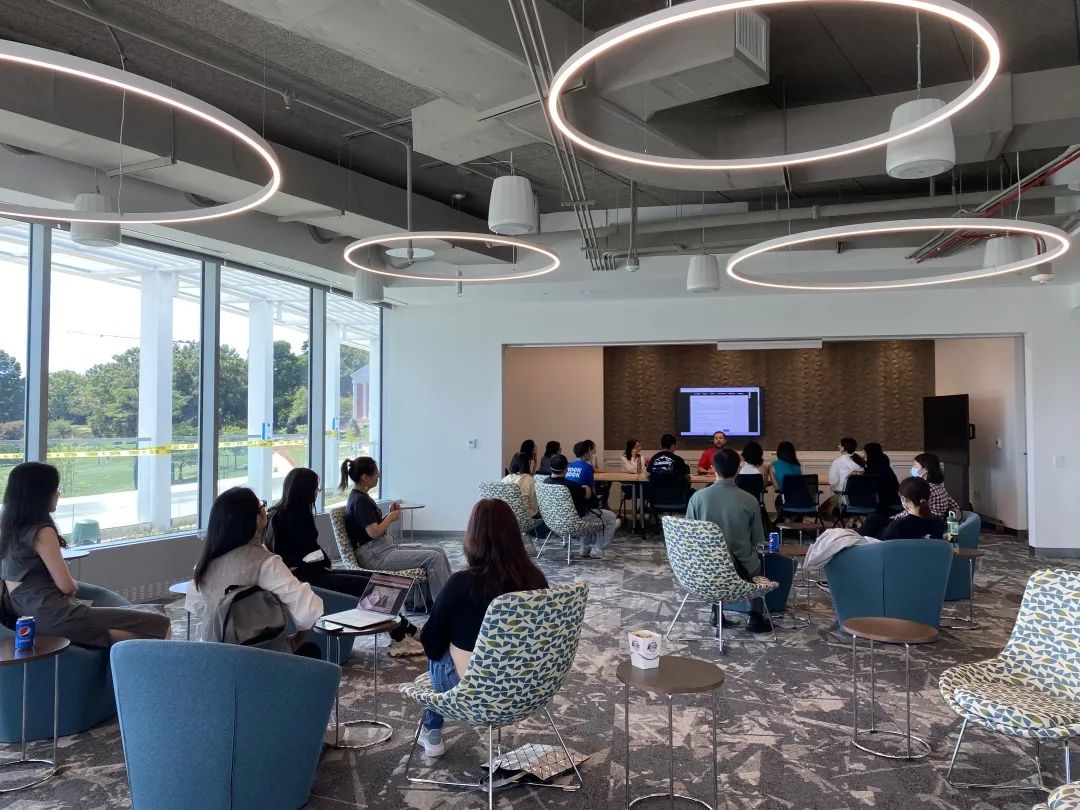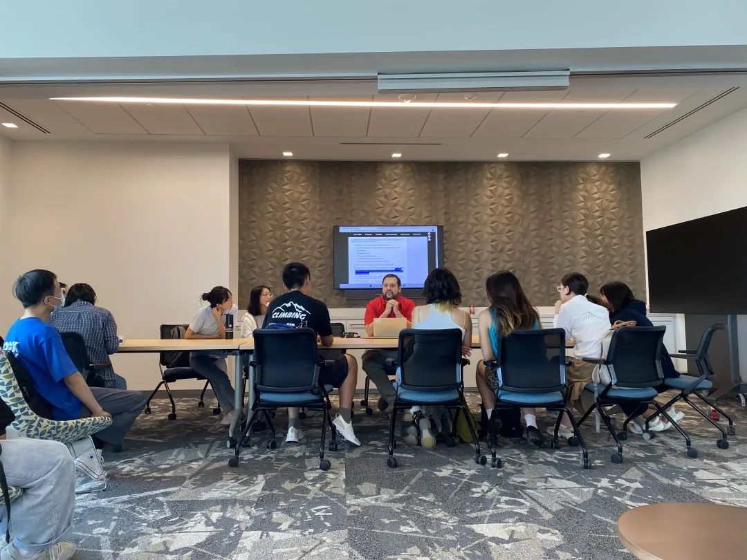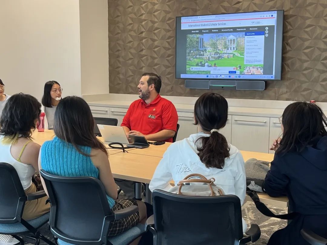 午餐结束后,同学们便前往阅读室与来自ISSS的Brad Calvin老师就美国国际学生留学政策的注意事项进行交流。ISSS是专门为马大国际学生和学者服务的办公室,致力于协助留学生和访问学者顺利入境美国,就入境要求提供建议,以及负责为马大与其他院校互相派遣留学生和访问学者等工作提供服务等。在成功入境美国后,ISSS还会帮助留学生和访问学者熟悉校园环境,解答留学期间与I-20和签证等政策方面的疑惑,为留学生们顺利完成美国学业保驾护航。