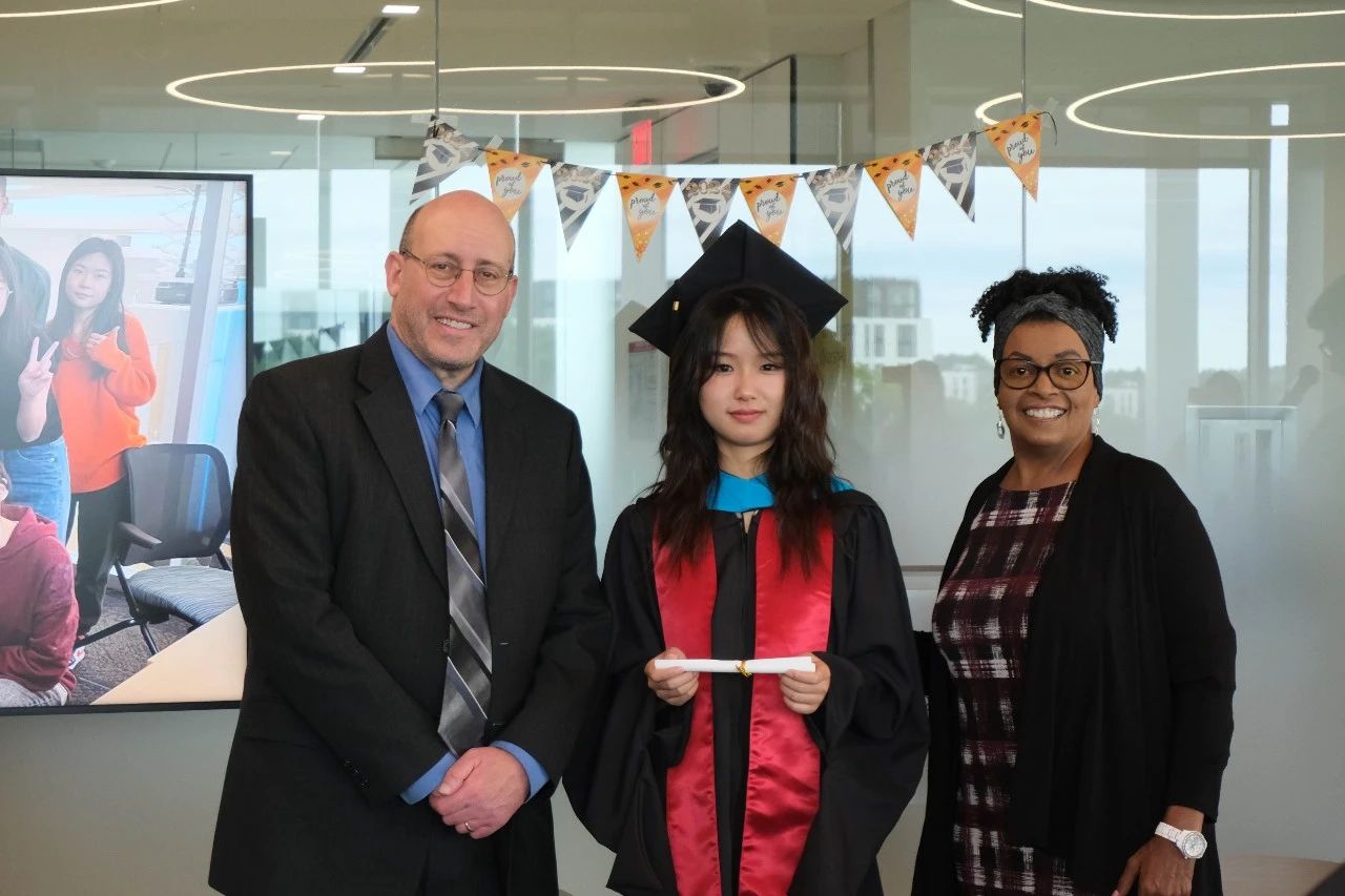 随着典礼的尾声,全体毕业生按顺序依次上台,从副院长Nina Harris手中郑重地接过毕业证书。这一刻,他们的心中充满了对过去的深深怀念与对未来的无限憧憬。